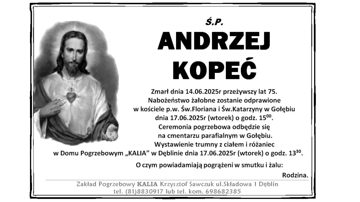 ZMARLI14 czerwca zmarł Andrzej Kopeć. Miał 75 lat.