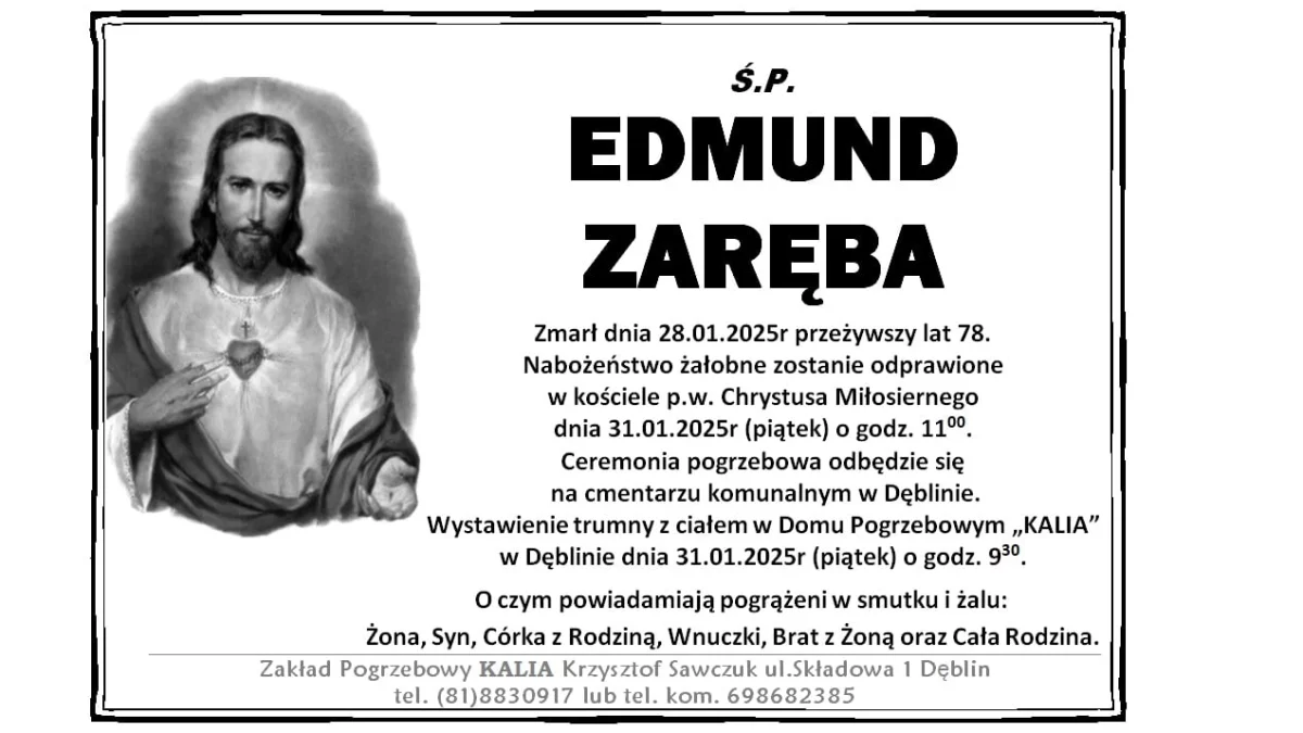 ZMARLI28 stycznia zmarł Edmund Zaręba. Przeżył 78 lat.
