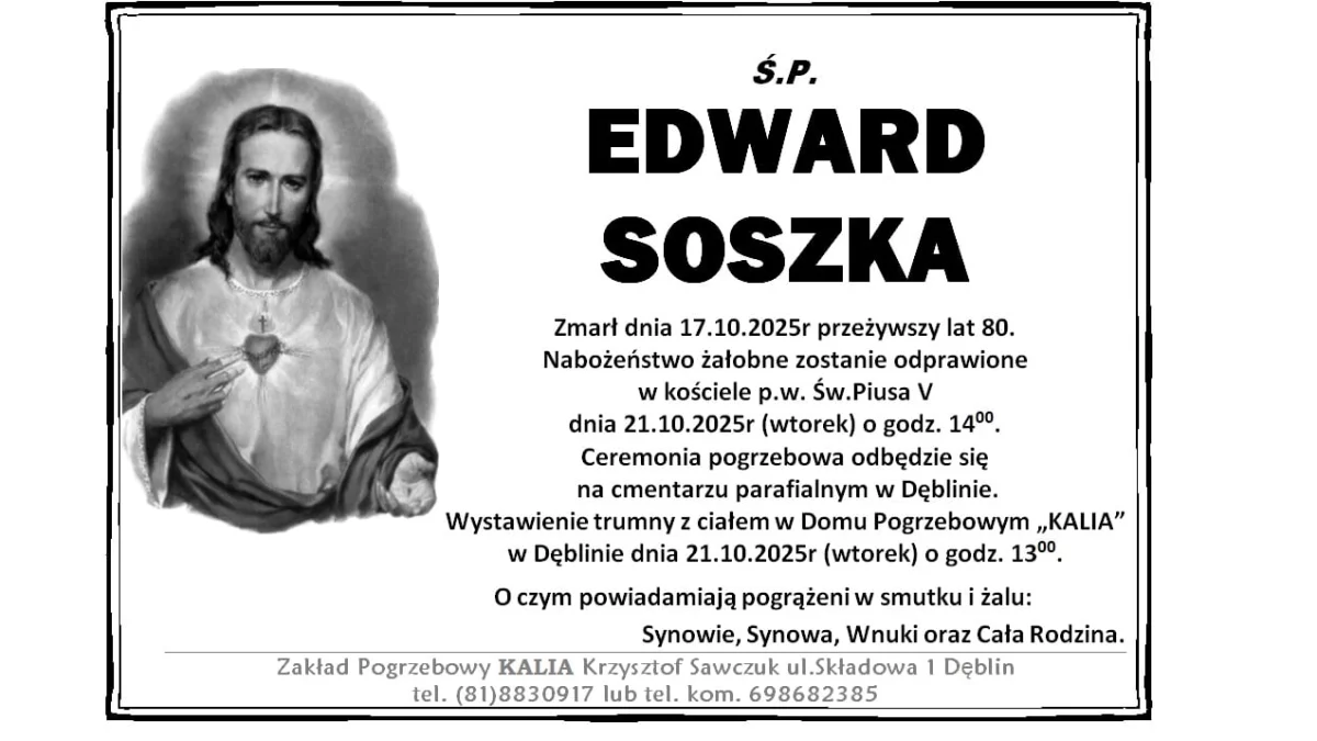 ZMARLI17 października zmarł Edward Soszka. Miał 80 lat.