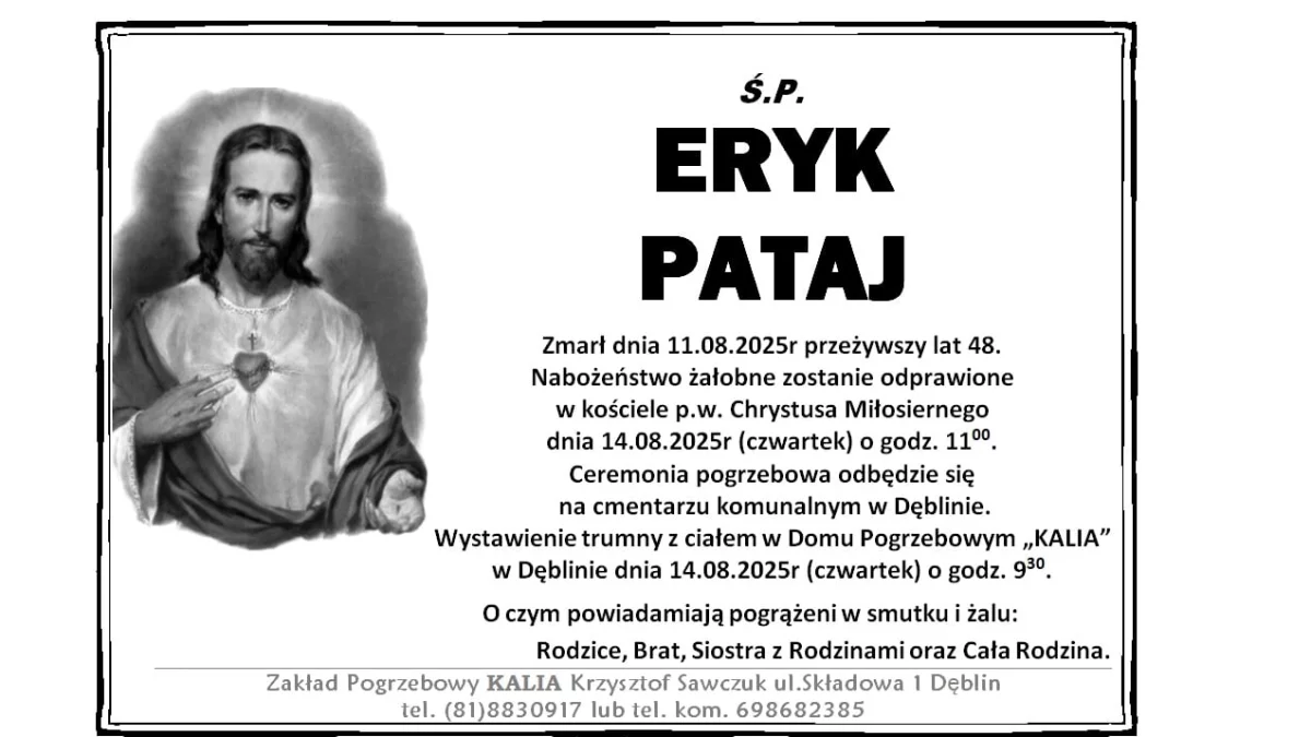 ZMARLI11 sierpnia w wieku 48 lat umarł Eryk Pataj.