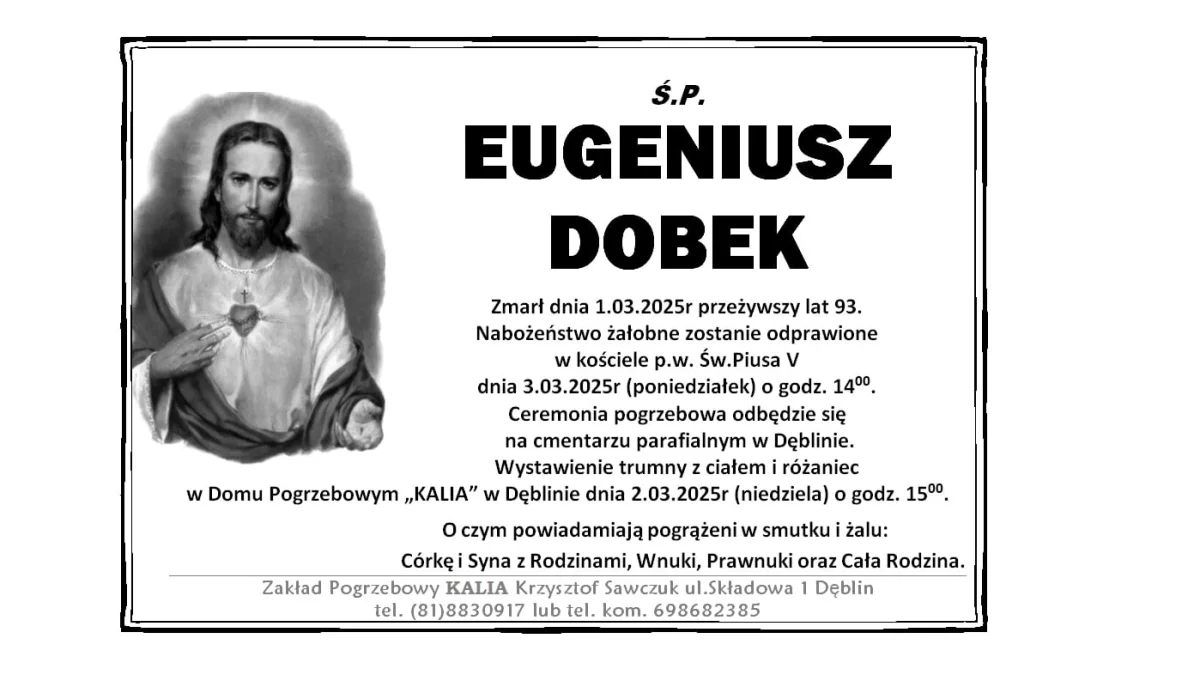 ZMARLI1 marca zmarł Eugeniusz Dobek. Miał 93 lata.