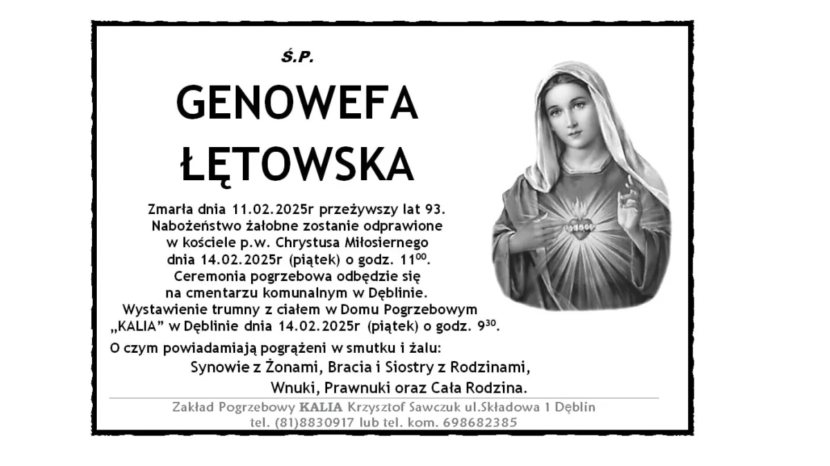 ZMARLI11 lutego zmarła Genowefa Łętowska. Miała 93 lata.