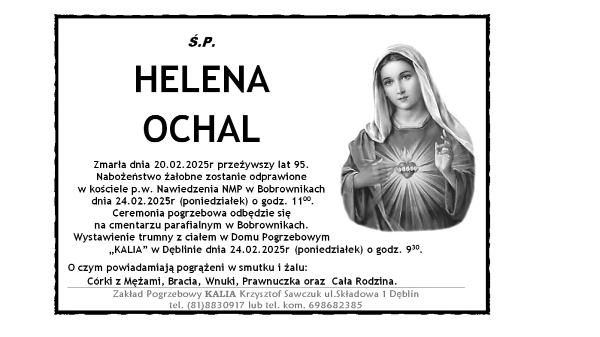 ZMARLI20 lutego zmarła Helena Ochal. Przeżyła 95 lat.