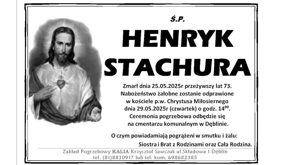 ZMARLI25 maja zmarł Henryk Stachura. Przeżył 73 lata.