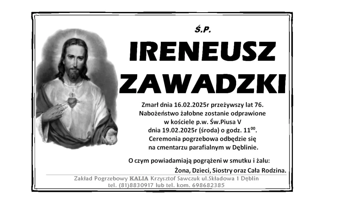 ZMARLI16 lutego zmarł Ireneusz Zawadzki. Przeżył 76 lat.