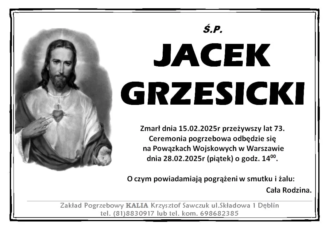 ZMARLI15 lutego zmarł Jacek Grzesicki. Przeżył 73 lata.