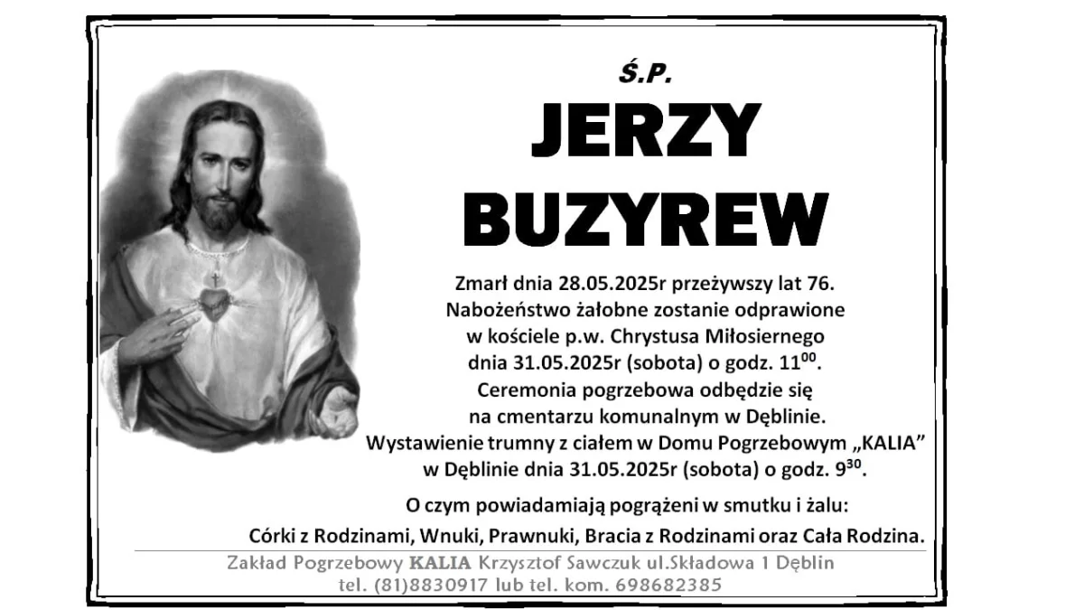 ZMARLI28 maja zmarł Jerzy Buzyrew. Przeżył 76 lat.