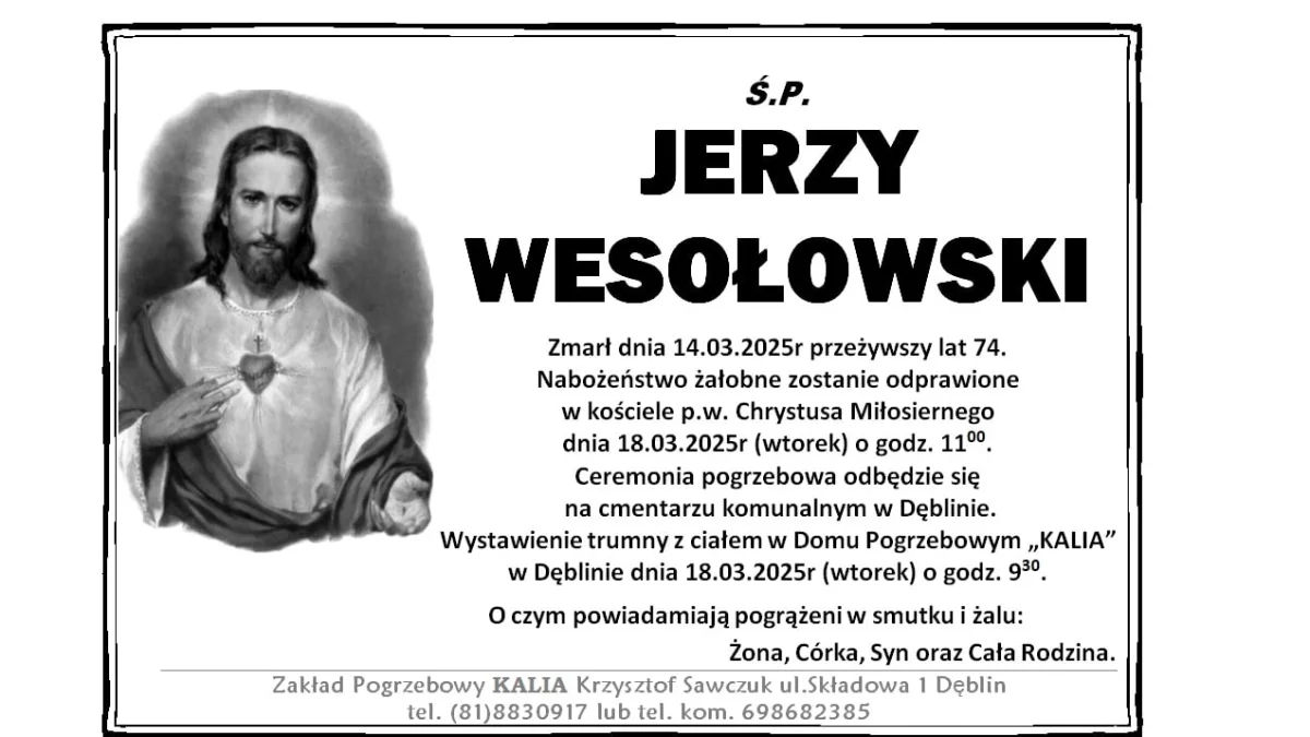 ZMARLI14 marca zmarł Jerzy Wesołowski. Miał 74 lata.