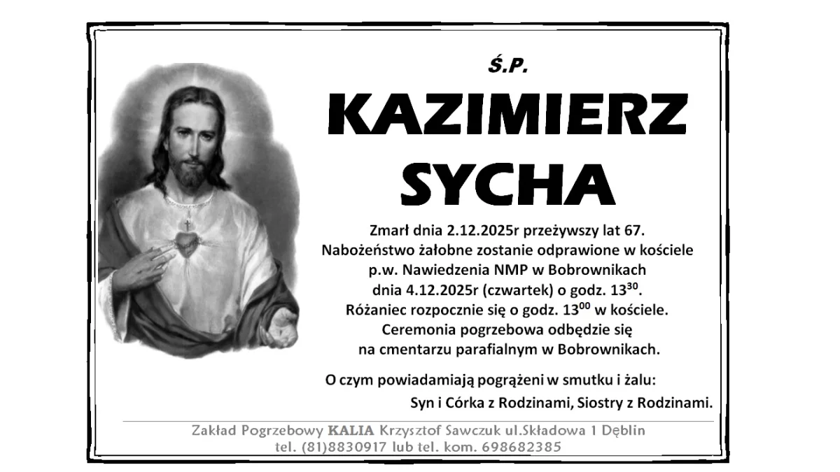 ZMARLI2 grudnia zmarł Kazimierz Sycha. Przeżył 67 lat.