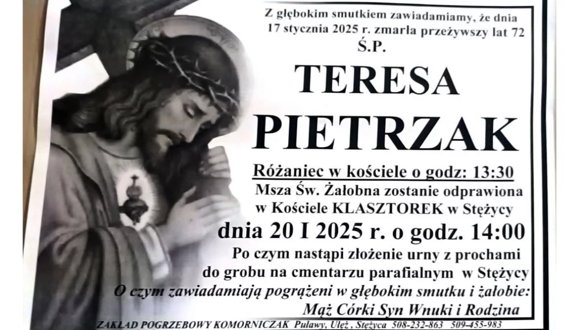ZMARLI17 stycznia zmarła Teresa Pietrzak. Miała 72 lata.