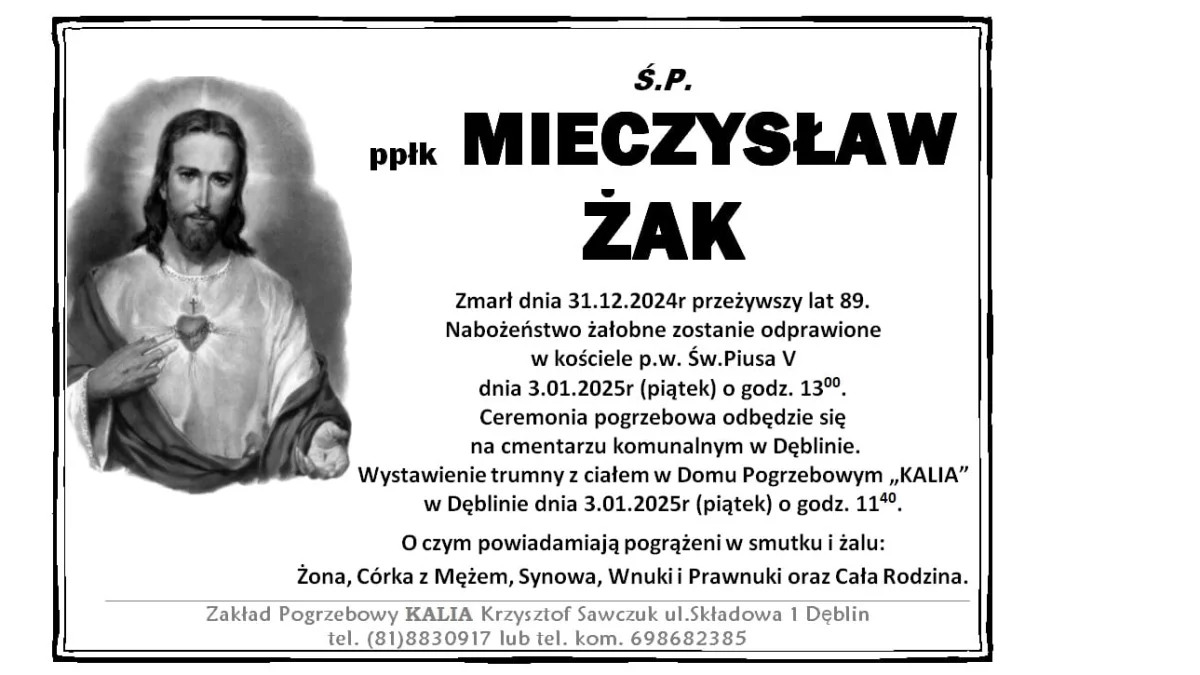 Ceremonia pogrzebowa odbędzie się na cmentarzu komunalnym w Dęblinie.