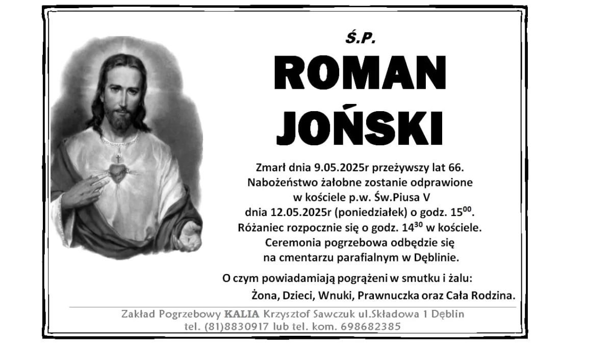 ZMARLI9 maja zmarł Roman Joński. Miał 66 lat.