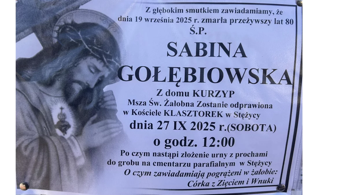 ZMARLI19 września zmarła Sabina Gołębiowska. Przeżyła 80 lat.