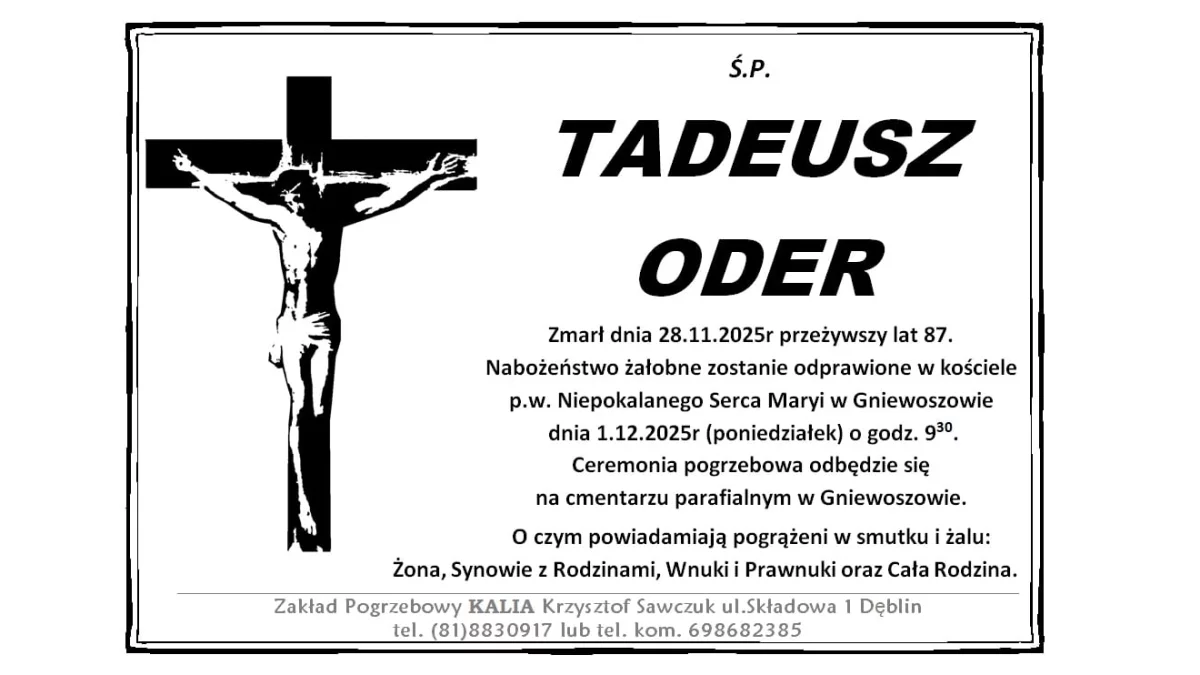 ZMARLI28 listopada zmarł Tadeusz Oder. Przeżył 87 lat.