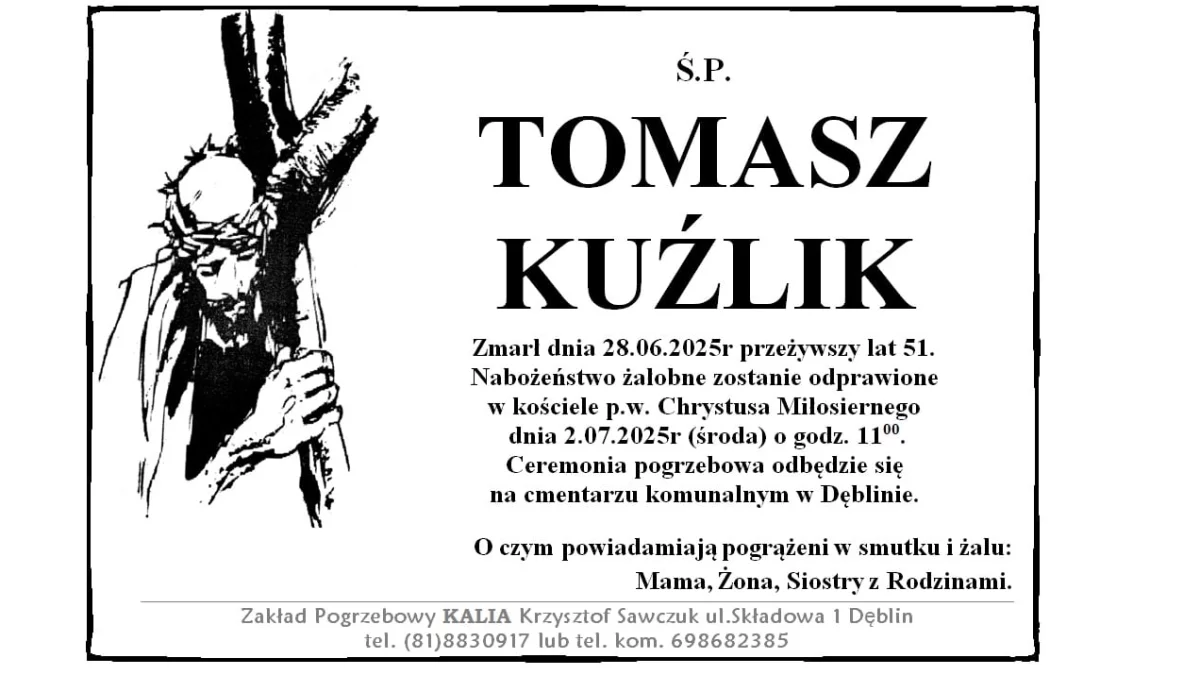 ZMARLI28 czerwca zmarł Tomasz Kuźlik. Przeżył 51 lat.