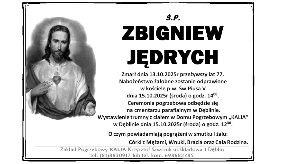 ZMARLI13 października zmarł Zbigniew Jędrych. Miał 77 lat.