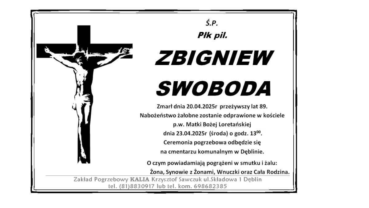 ZMARLI20 kwietnia zmarł Zbigniew Swoboda. Przeżył 89 lat.