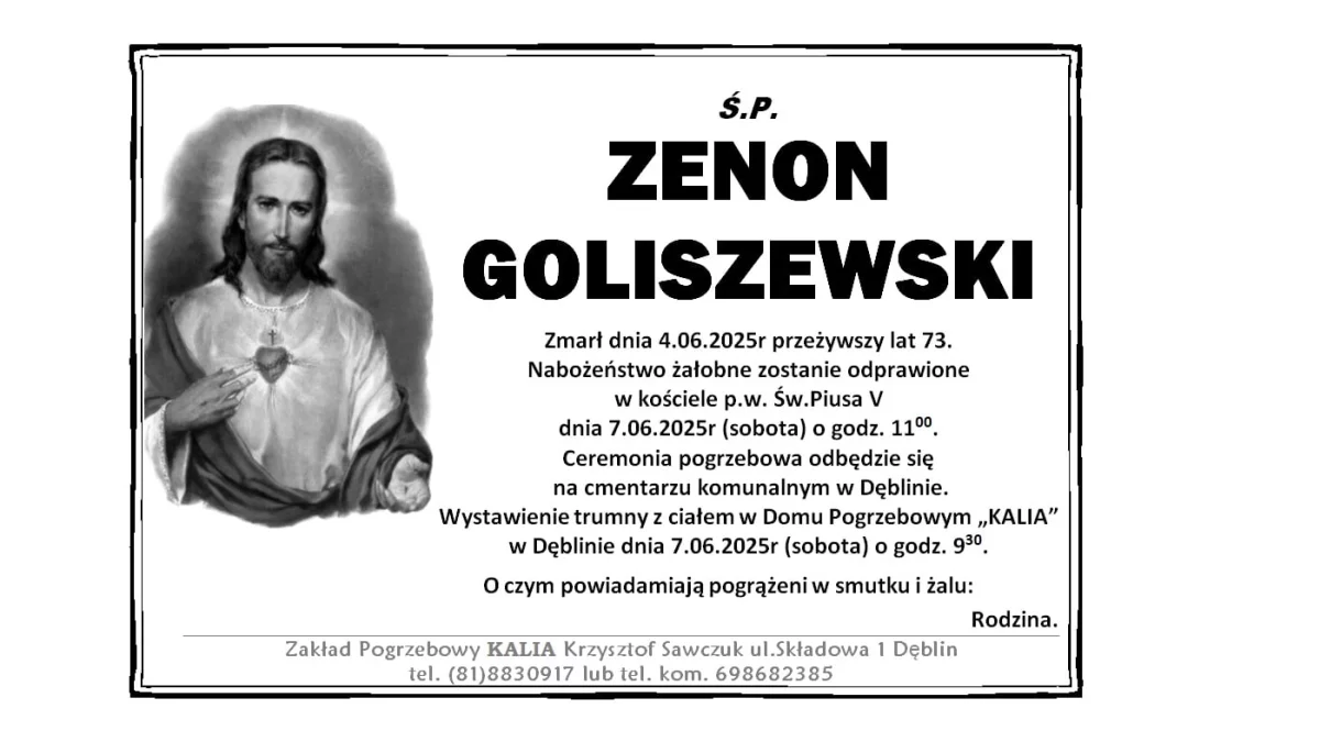 ZMARLI4 czerwca zmarł Zenon Goliszewski. Przeżył 73 lata.