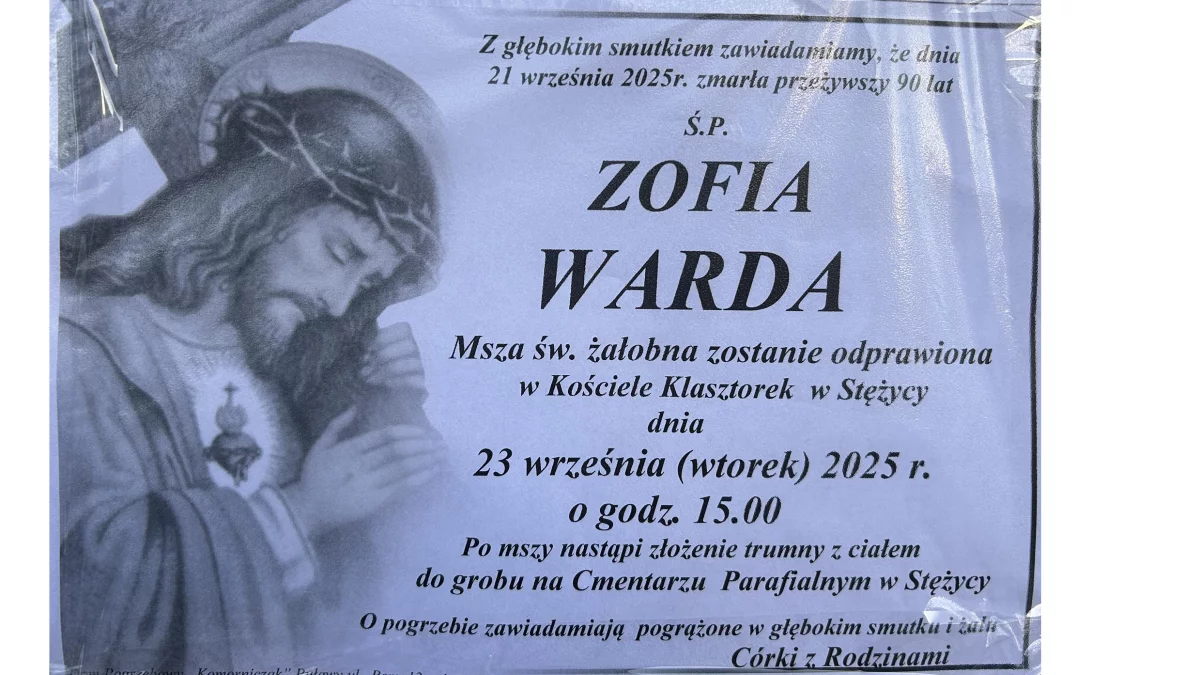 ZMARLI21 września zmarła Zofia Warda. Miała 90 lat.